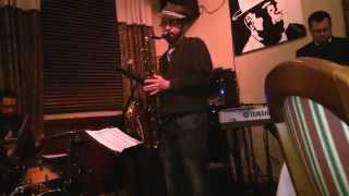Josh Brinkman (Sax), Andy Poindexter (Keys), and Fred Jackson (Drums) perform Billies Bounce at Jimmy\'s on the James, Lynchburg, VA on March 7, 2015.