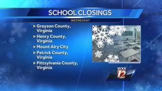 Wednesday school closings and delays Subscribe to WXII on YouTube now for more: http://bit.ly/1mVq5um Get more Winston-Salem news: ...